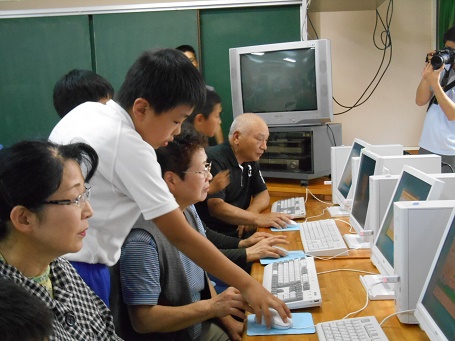 地域の方と子どもたちが一緒に学ぶ「鶴の子スクール」が開校しました。1日は、その開校式と、第一回の講座としてパソコンを使った名刺づくりを行いました。