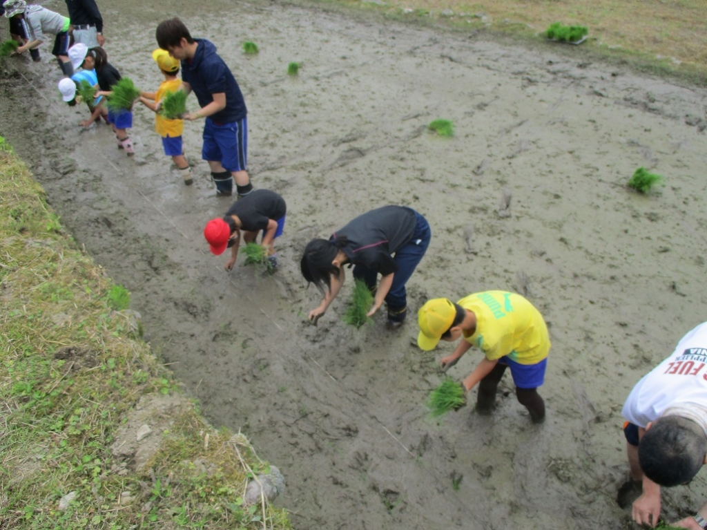 大事に育てたイネの苗。地域の方にたくさん手伝っていただいて田植えをしました
