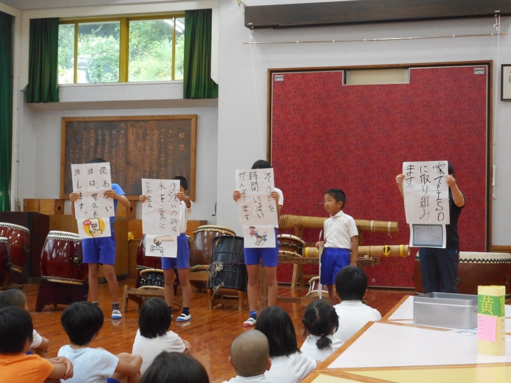 環境委員会が5つの宣言項目を発表しました。みんなで環境を考えて頑張ります。