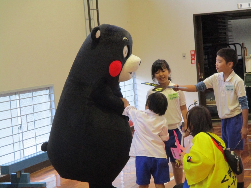 どんどん打ち解けていって最後はくまモン先生から離れない子供たちでした。