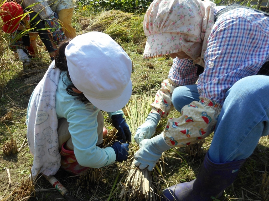 地域の方と一緒に稲刈り
