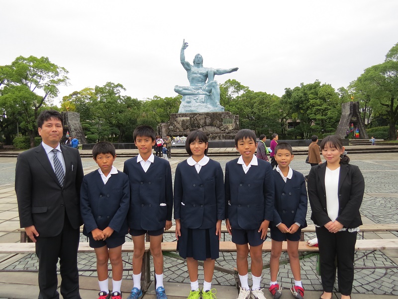 10月17日(水)、6年生5人と担任2人は、4校連合(水東小、葛渡小、久木野小)で長崎に向け修学旅行に出発しました。