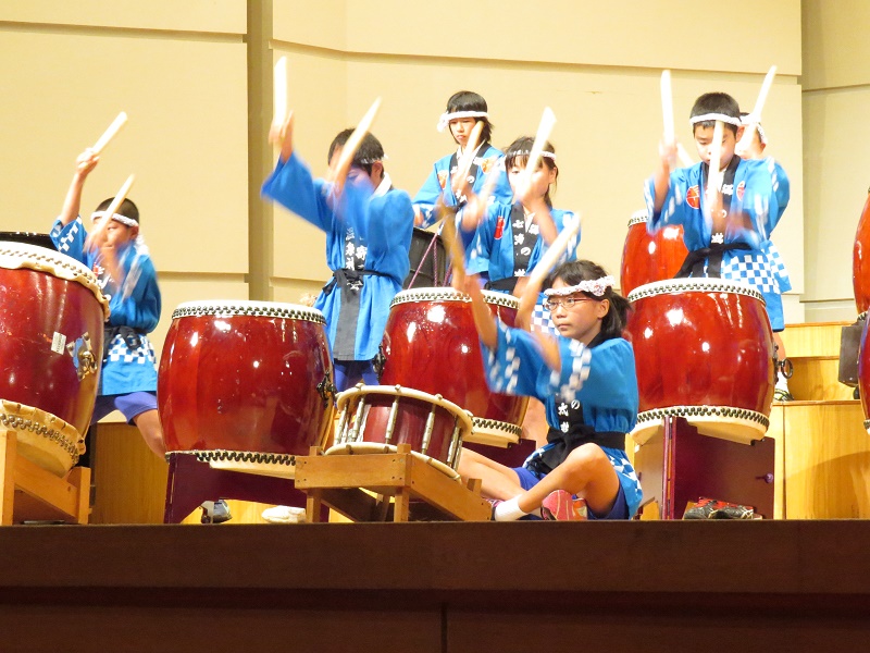 湯出小学校は、「いつまでも伝えたい」を高らかに歌い、「湯出っ子七滝太鼓」を力強く披露しました。