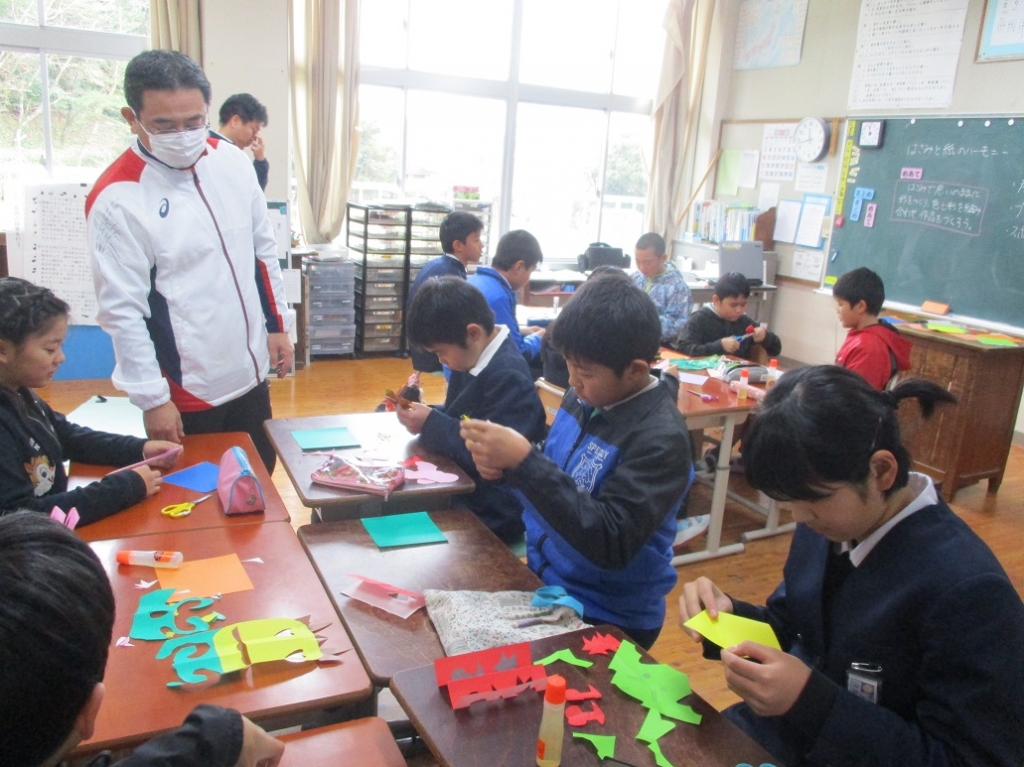 12月12日(火)、全校児童が水東小学校に出かけて4校時の授業から給食・昼休みにかけて、交流をしました。日頃、極少人数で学習に取り組んでいるので、大人数の中ではやや緊張気味。でも、次第に慣れて、楽しそうに活動に取り組む姿が見られました。