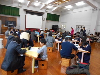 12月19日(火)、鶴の子スクールで、漢字大会と防災学習を行いました。