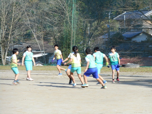 12月21日(木)、久木野小学校の5・6年生と本校児童5・6年生が、合同でサッカーの練習をしました。