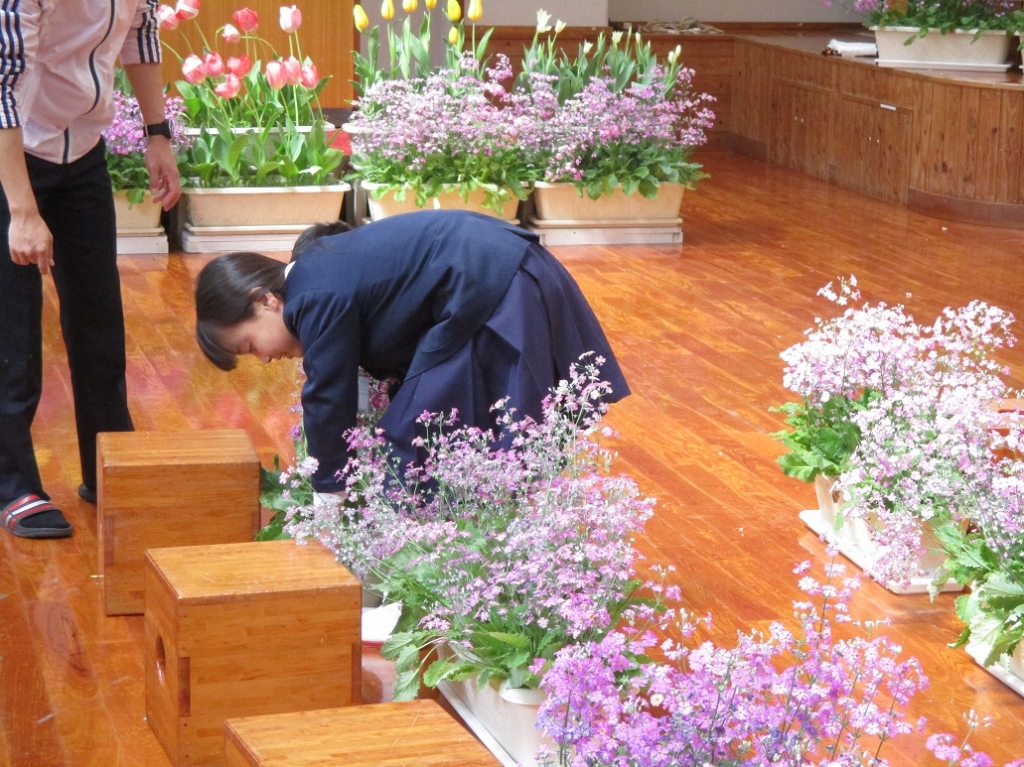 2年生から6年生は、学年が一つ上がって大張り切り!率先して仕事を行ってくれました。また、チューリップやサクラソウも、春らしく華やかに会場を飾ってくれました。後は、かわいい新1年生を待つのみ!