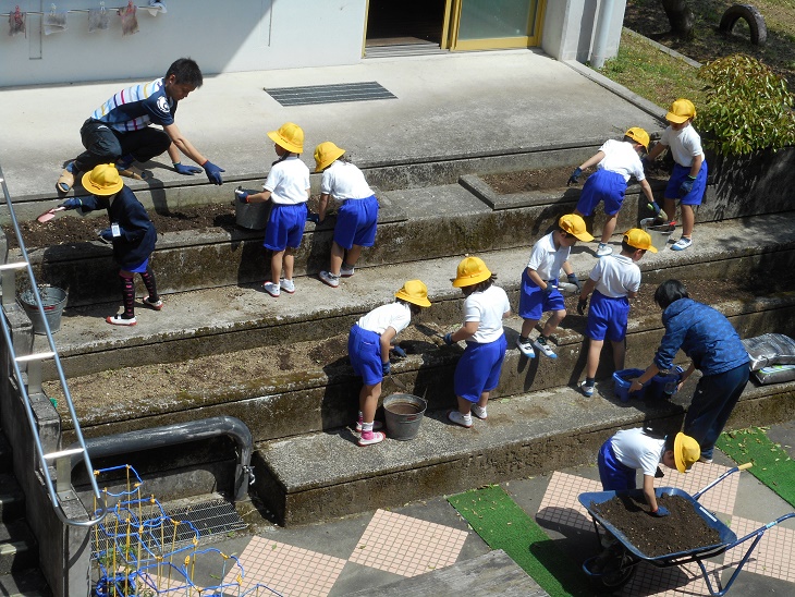 何かな~と思ってみていたら、どうやら野菜の苗を植えるようです。土の感触を楽しんでいる様子がうかがえました。