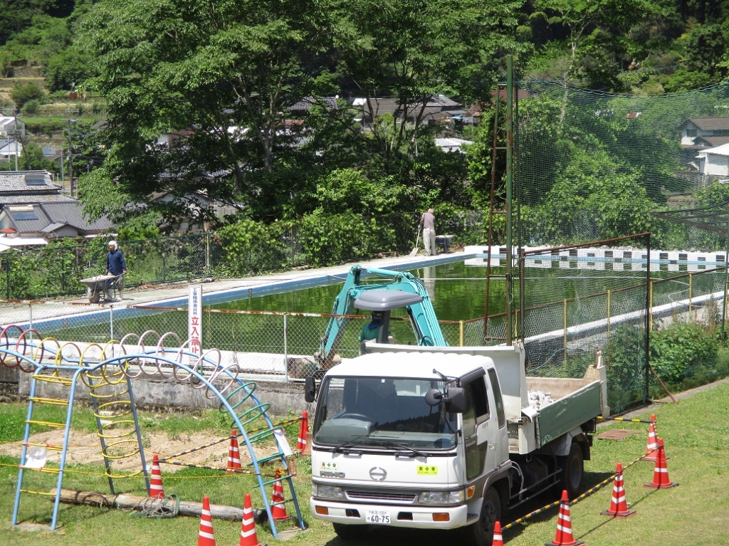 工事が安全に無事に終われば、6月4日にはプール掃除をして6月中旬にはプール開きとなります。