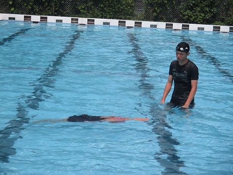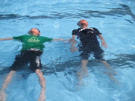 全校児童で、自分の命を守るためにということで、着衣のまま水に浮かぶ練習をしました。