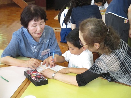 今回は、漢字大会にチャレンジ。その後、1・2年生と一緒に、夏に関する言葉を集めてビンゴゲームを楽しみました。