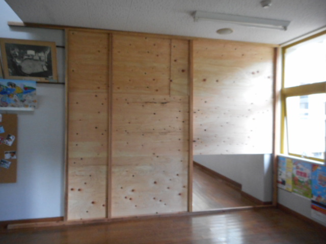 23日(月)には、トイレ前の廊下が破砕物・粉砕物飛散防止のため封鎖されました。これからどうなっていくのかとても楽しみです。