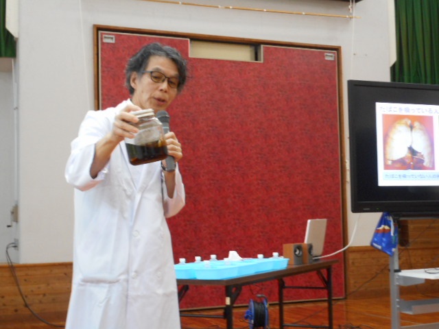 髙濵 馨 先生をお迎えして、喫煙防止教室を行いました。保護者の方も多数参加いただいて、みんなでタバコは吸わないという意識を持つことができました。