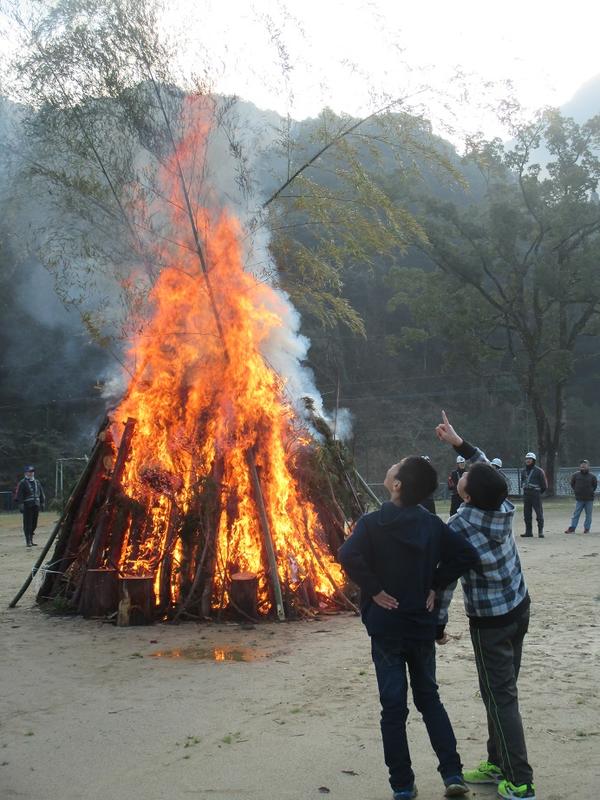 1月13日(日)、地域の消防団や保護者の御協力を得て、ようやくドンドヤを実施することができました。