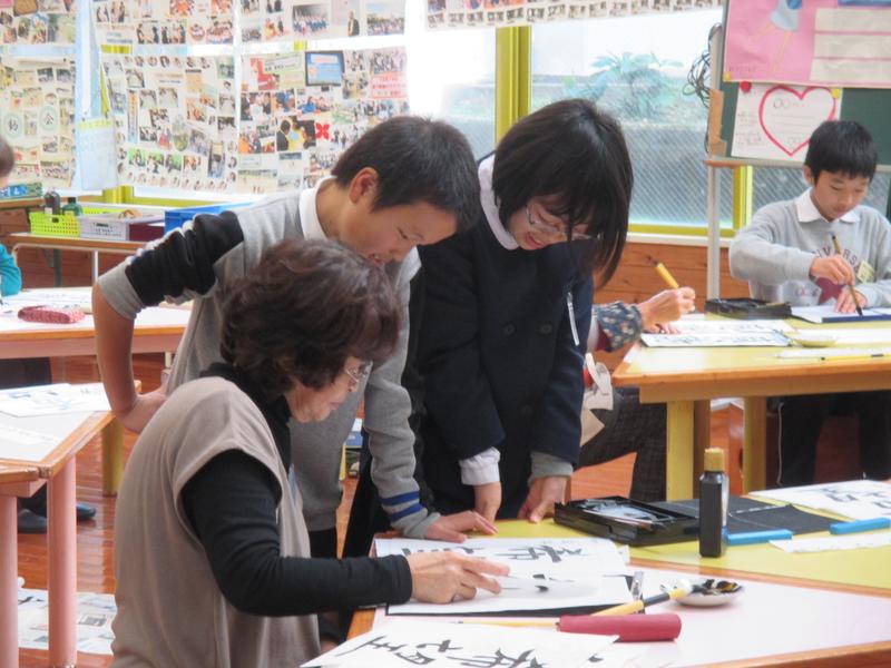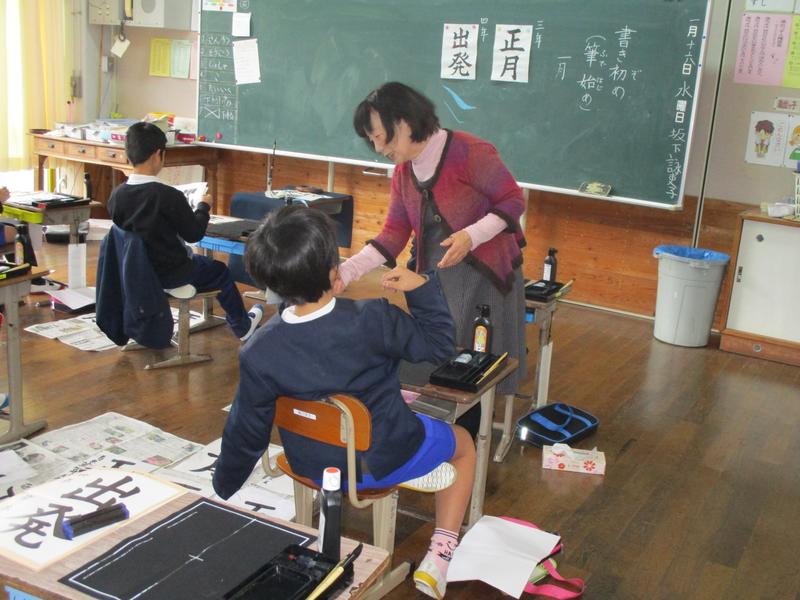 鶴の子スクールで書き初めをしました