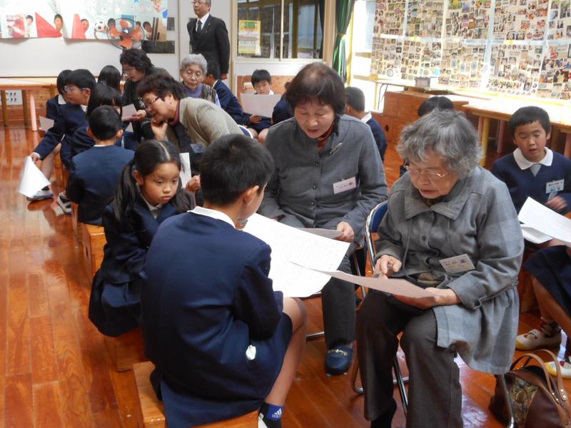 国語の授業では、「たぬきの糸車」を題材に子供たちとスクール生が対話的な学びを行いました。そのあと、修了式として、みなさんお一人お一人に修了書をお渡ししました。子供たちと一緒にお祝いしました。