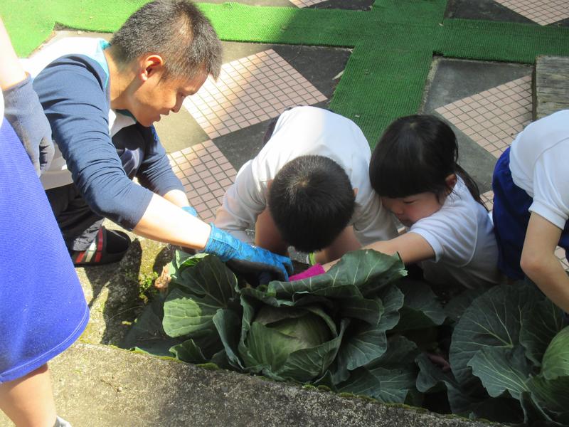 3月11日、教室前の花壇で育てていた野菜が立派に育ち、1・2年生が笑顔いっぱいに収穫を行いました。