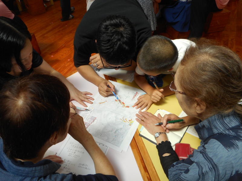 7月6日(土)に、防災教室を開催しました。鶴の子スクールのスクール生の皆さんと保護者の皆さん、それに子供たちと先生たちがみんなで気象情報が出た時に、どんな準備をしたり行動したりするかについて、班ごとに話し合いました。