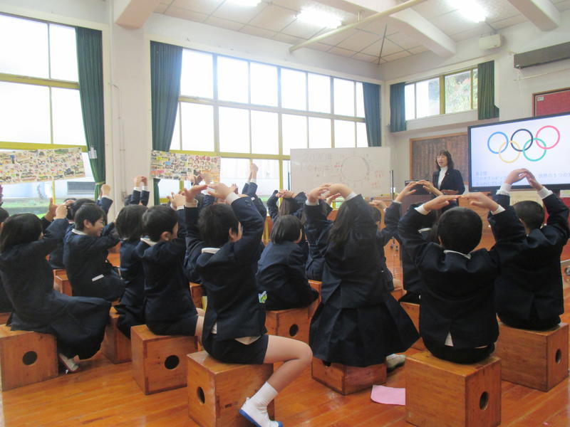 今年は、オリンピックイヤー。〇✖クイズで基礎知識を確認しながら、オリンピック・パラリンピックの理念等を紹介しました。
