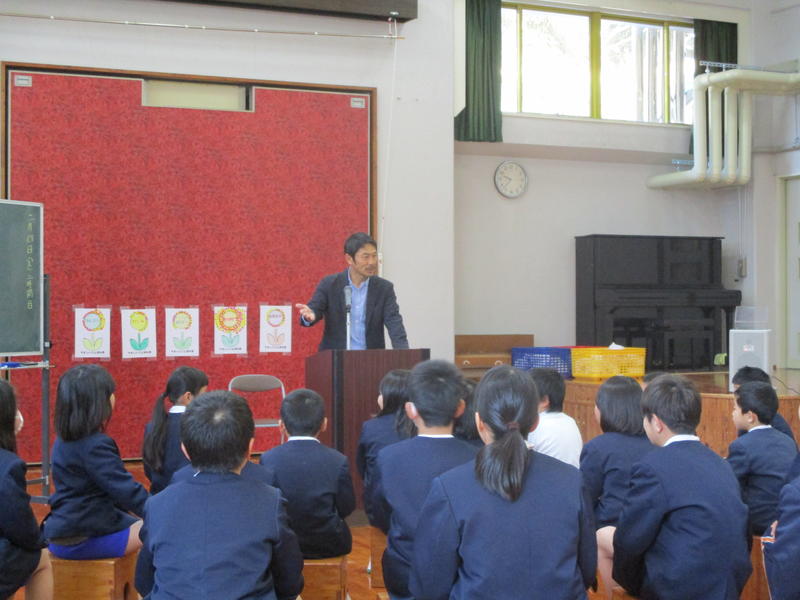 どの子供にもわかりやすく語りかけてくださった杉本肇さん。辛く苦しかった経験を自分たちと重ね合わせて聞いていた子供たち。40分ぐらいのお話を集中して聞くことができました。