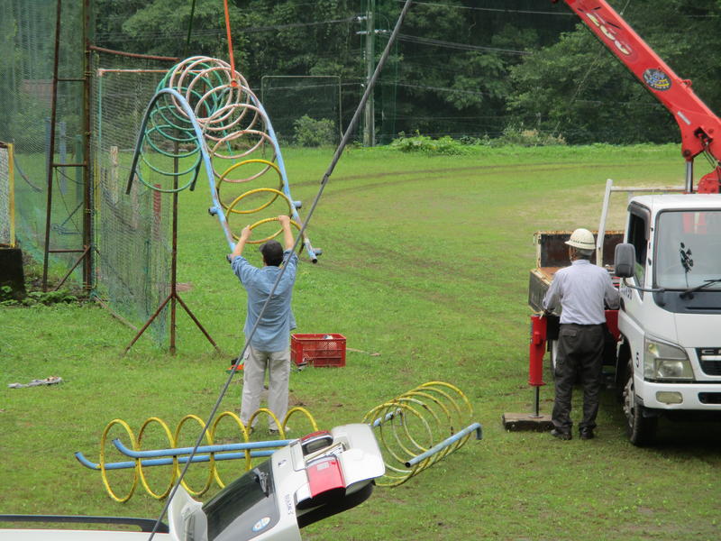 子供たちの大好きな遊具が、修理のために運び出されました。