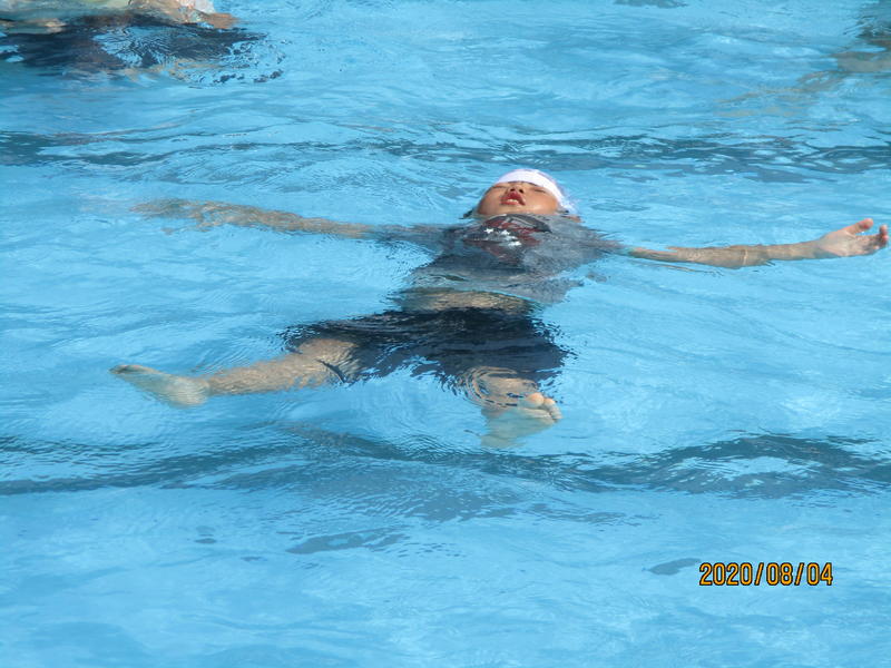 8月4日、児童全員で着衣水泳にチャレンジしました。万が一でも水の事故にあったならば、「大の字になって浮いて助けを待つ」ことを学んだ子どもたちでした。