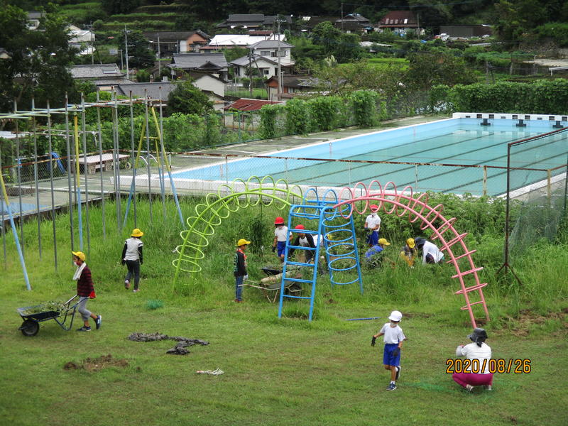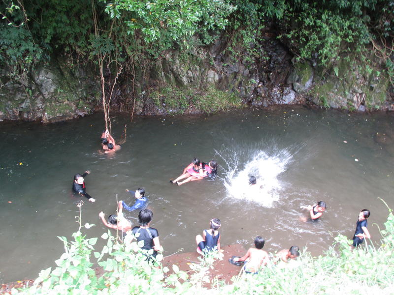 今年の夏休みは短いけれど、楽しい思い出を作ってやりたい・・・。PTAががんばってくださいました。頭石の川は本当に水がきれいです。