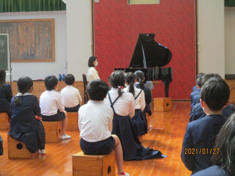 1月27日(水)、ピアニストの山本亜矢子さんをお迎えして、全校児童対象のピアノ演奏会を開きました。
