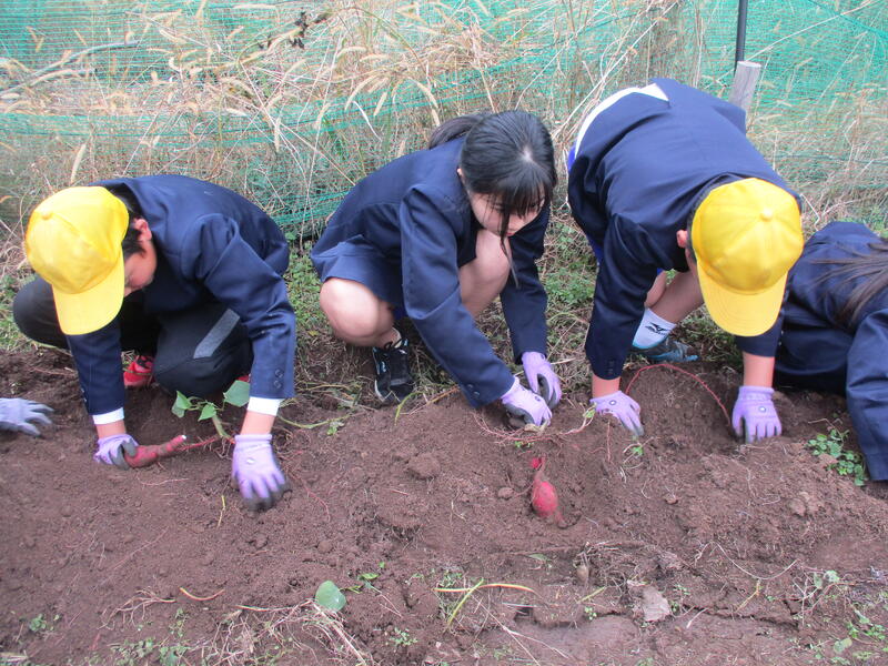 12月1日(金)、学校園で栽培している芋の収穫を行いました。苗を植えてから、イノシシやシカとの闘いの日々でした。予定より少ない量となりましたが、どうにか収穫することができました。