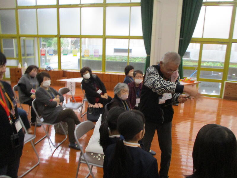12月19日(火)、鶴の子スクールがありました。今回は、1・2年生と一緒に昔遊びを楽しみました。