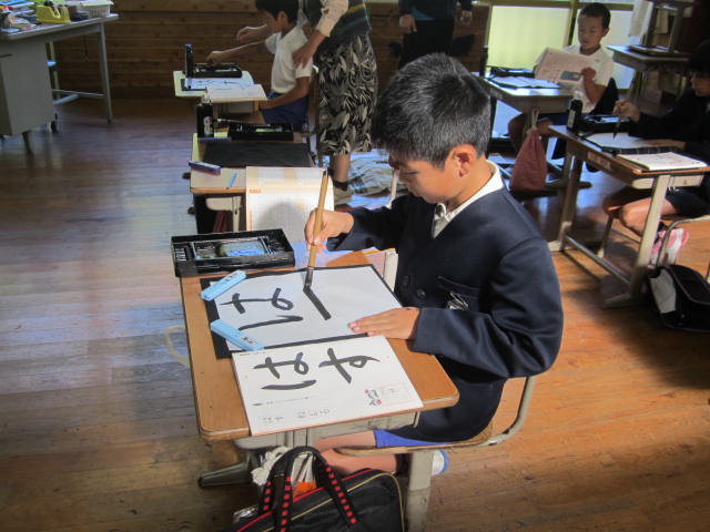 11月2日(水)書写の時間。4年生が、姿勢正しく、集中してひら