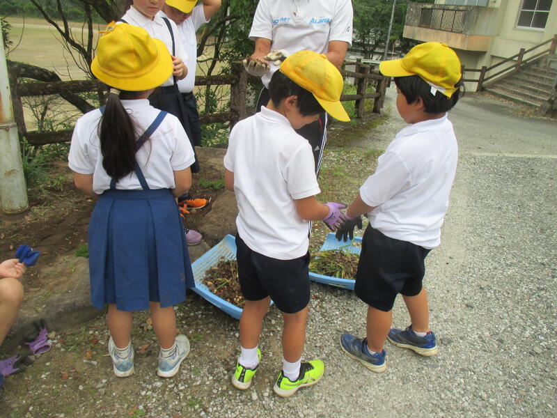 3年生は理科の時間(3時間目)に、チューリップの球根掘りをしました。4月にきれいな花を咲かせたあと、しばらく大きくなるまでそのままにしておいた球根を掘り出しました。宝さがしみたいで、楽しそうに活動してました。