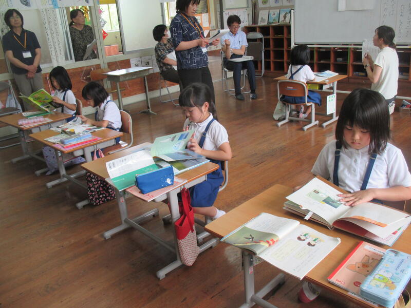 12日(月)5校時、1・2年生の教室において研究授業を行いました。今回は、国語科の学習(図書館活用教育)の様子を全職員及び第一小学校のスーパーティーチャー寺川指導教諭と一緒に確認しました。