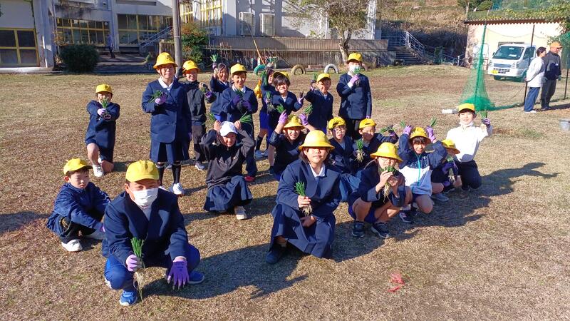 12月4日(木)サラダ玉ねぎを全校児童で植えました。サラダ玉ねぎのにおいを感じたり、やり方に気を付けて植えたりしました。収穫は来年度です。楽しみに育てていきます♪