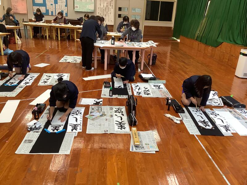 1月19日(月)第6回鶴の子スクールでは、3・4年生と一緒に書写授業「書き初め」を実施しました。今回も3・4年生の書写の時間にご支援をいただいている講師の荒木先生を招き、ご指導をしていただきました。その上、今回は特別ゲストを招きご支援をいただきました。
