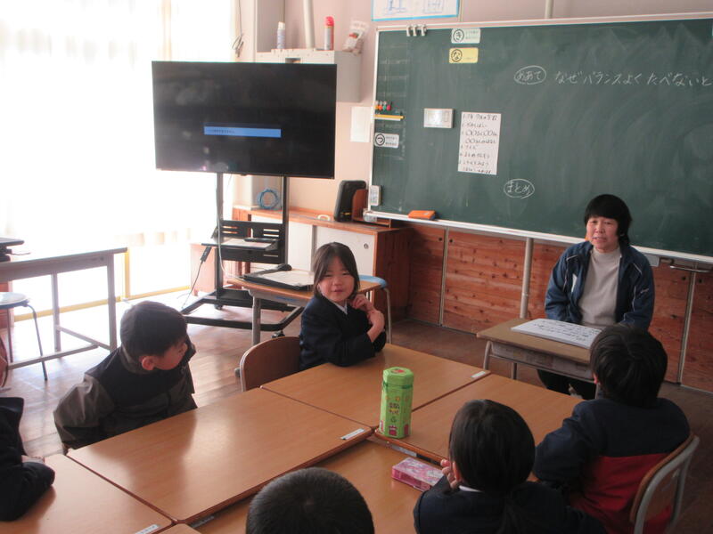 1月26日(月)に、1・2年生で食育の授業を行いました。養護教諭の坂本先生の話をよく聞き、楽しく栄養素について学びました。ぜひ1・2年生の子ども達に「これは何るん?」と聞いてみてください。きっと答えてくれると思います♪