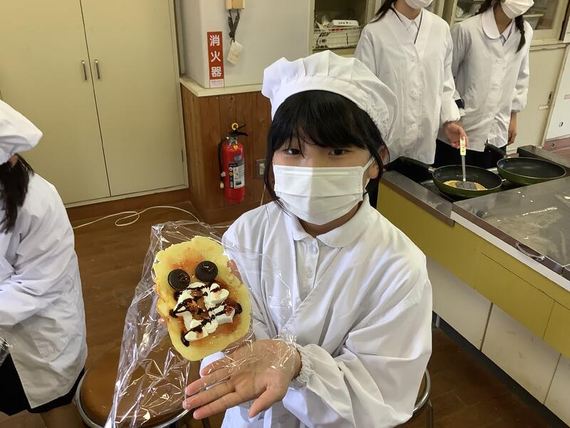 文化部で調理をしました。今回はクレープを作りました。生地をフライパンで薄く焼くのは、難しかったようですが、みんな上手にでき、おいしくいただきました。