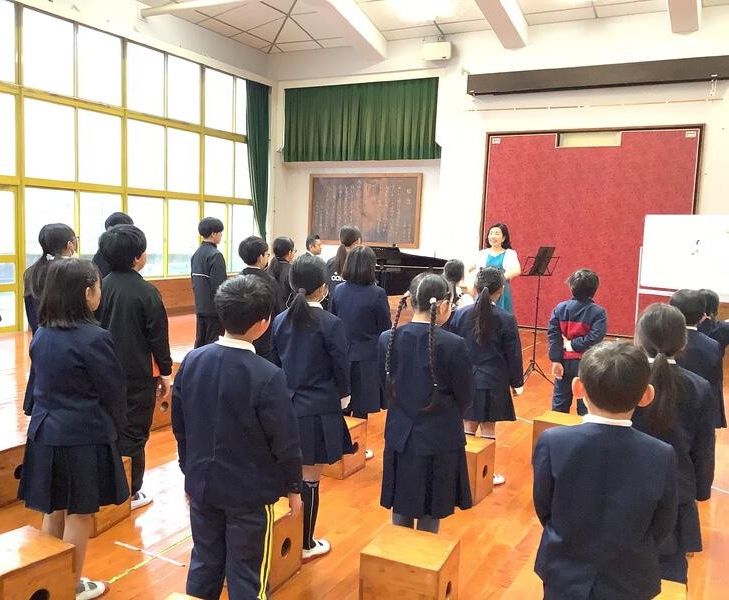 2月4日(水)に、アウトリーチ事業がありました。アウトリーチ事業とは、様々な分野の専門家に来ていただき、いつもとは違った学びを行うことのできる事業です。今年は声楽家の髙木佳央理様に来ていただきました。普段聞くことのできない迫力のある美しい歌声を聞いたり、指導をしていただいて一緒に校歌を歌ったりしました。授業が終わった後には、学校中のいたるところで、高音の美しい声を出そうとしている子供たちの姿がありました。とても貴重な体験となりました。