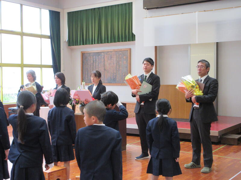 3月27日(金)に令和7年度末の定期異動等により湯出小学校を退任、退職される先生とのお別れの式、退任式がありました。