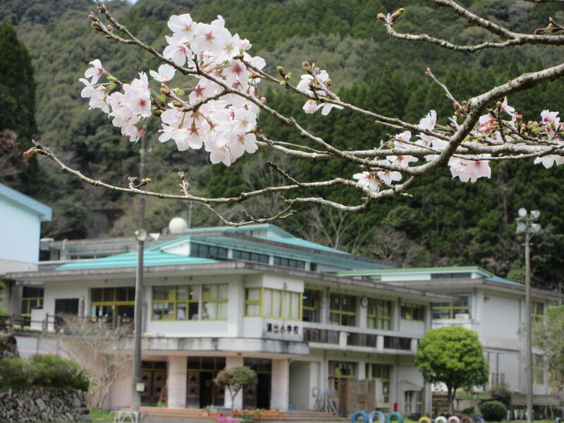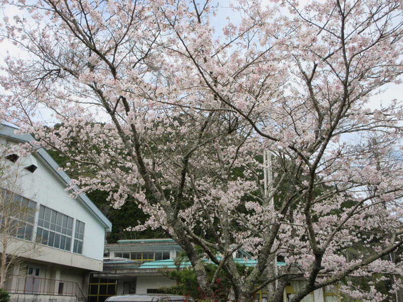 桜が満開になりました。春休みは子供たちは次の学年の準備、教職員は人事異動や次年度の準備でゆっくりと花見をする余裕はなかなかありませんが、ちょっと小休憩して湯出の春の風景を眺めてみませんか。きっと心の癒しとなるはずです。(撮影:校舎と桜)