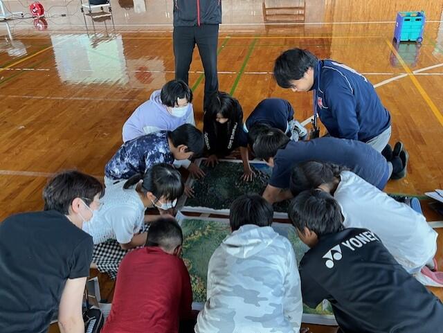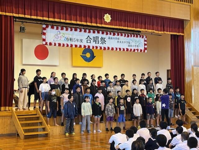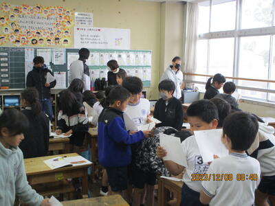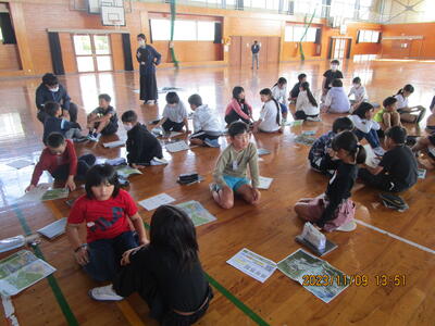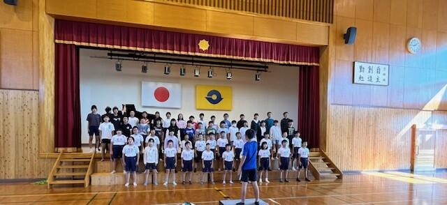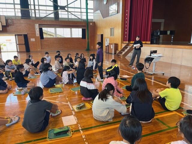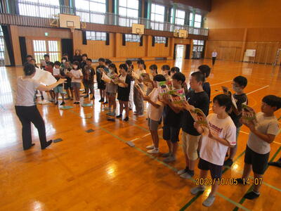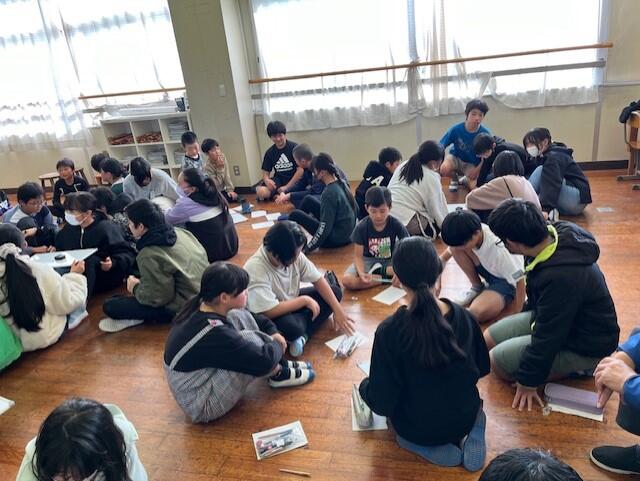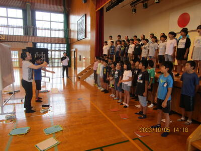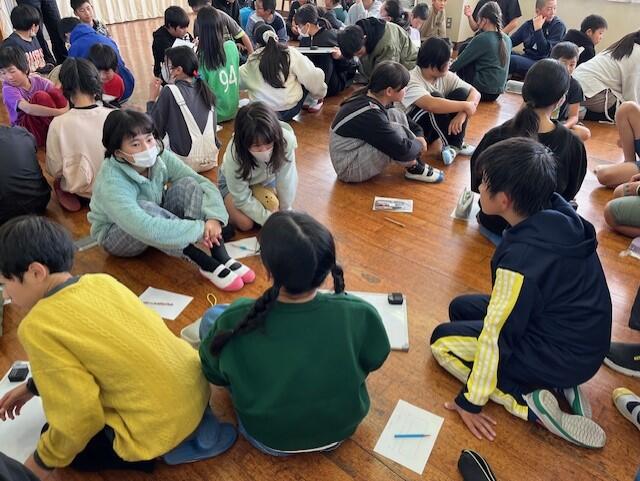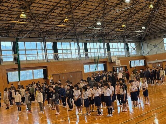 5日(木)の午後、湯前中学校の体育館に5,6年生が集合。
