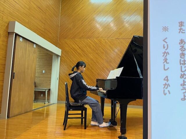 今月の歌の伴奏は、4年生の有馬さんでした。