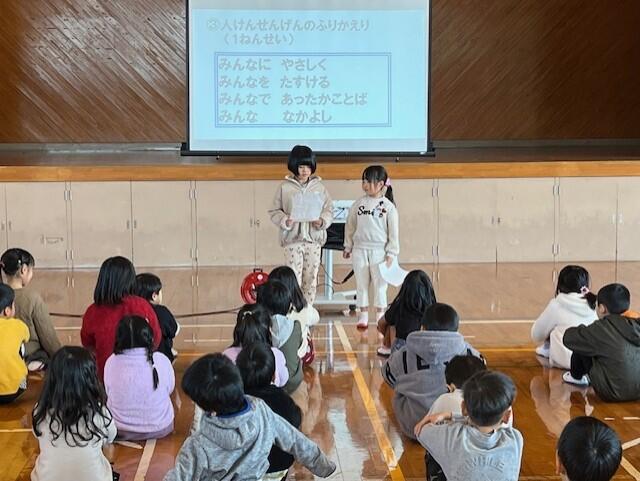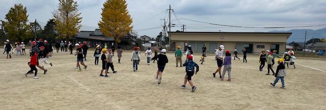 全校児童で6年生との別れを惜しみつつ、楽しい思い出をつくる