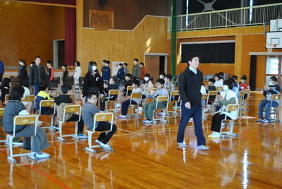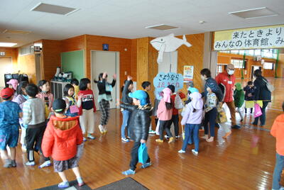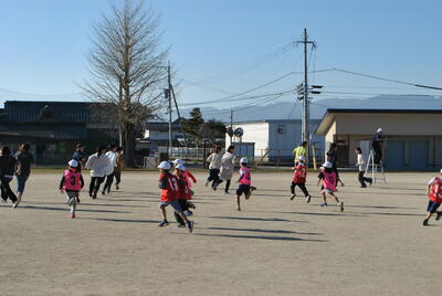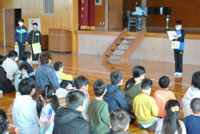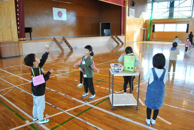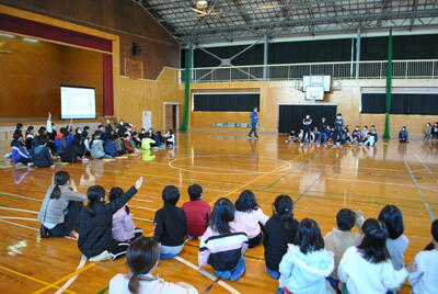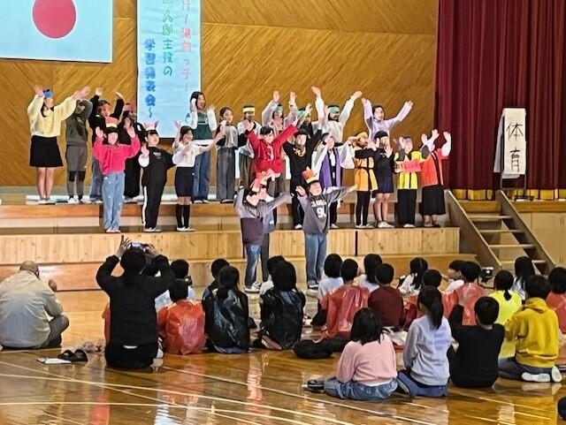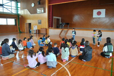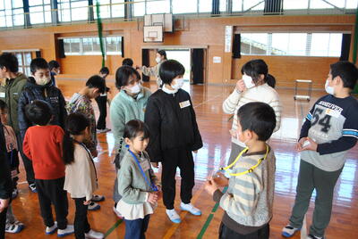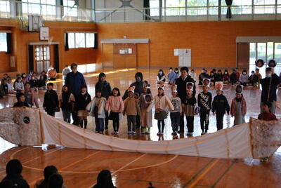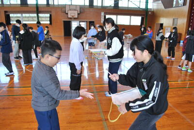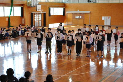 全校児童で6年生との別れを惜しみつつ、楽しい思い出をつくる