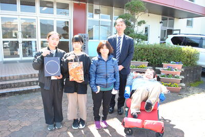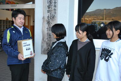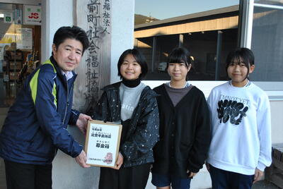 15日(月)、学校を代表して運営委員会の6年生3名が、湯前町社会福祉協議会に