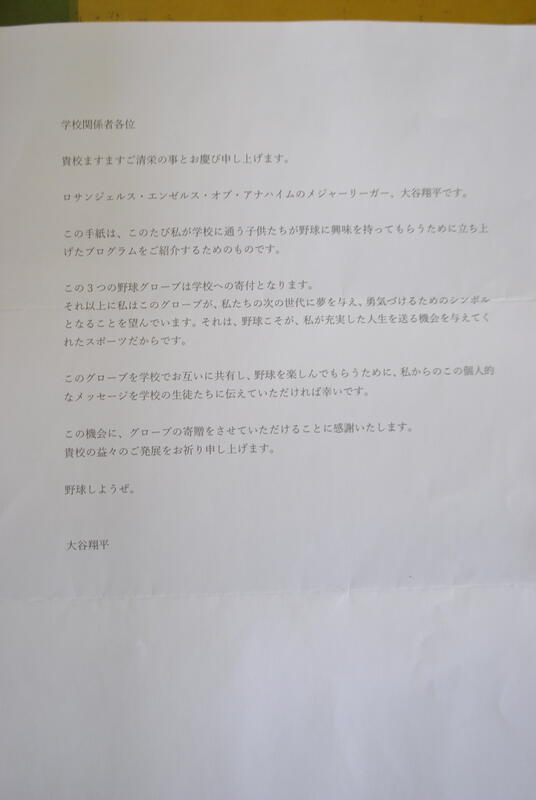 湯前小にも、ついに、大谷選手からのグローブが届きました!