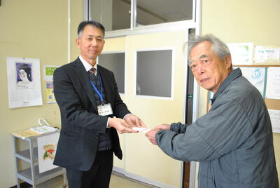 出向き義援金をお渡ししました。義援金は、熊本県の日本赤十字社を通じて現地に送