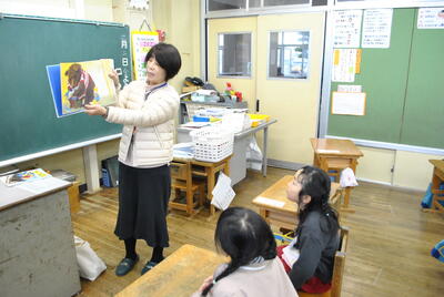1年生が地域の方々と「昔遊び」で