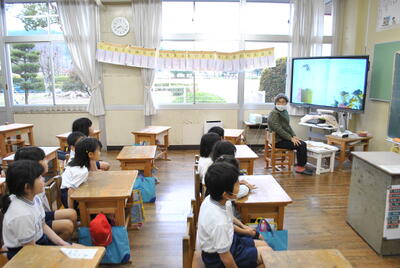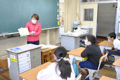 様子を県教育委員会から見に来られました。