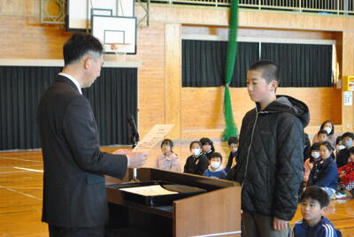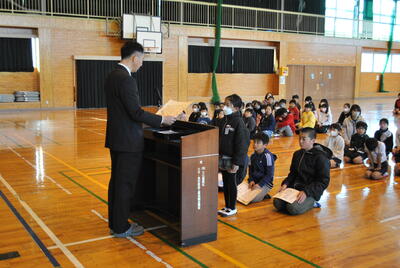 19日(火)、第6学年の修了式を体育館にて